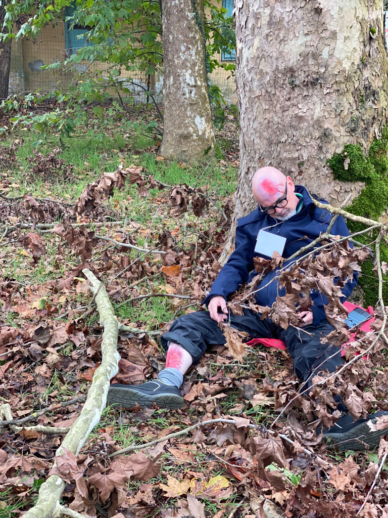 Nello specifico, nel mio ruolo di vittima durante la simulazione (role-playing), ho trascorso circa 2 ore e 30 minuti prima di essere “estratto” dal “cantiere” dell’evento. Questo periodo di tempo ha fornito un’esperienza molto intensa e significativa, poiché ho potuto sperimentare in modo più profondo il concetto di angoscia in una situazione di emergenza simulata.